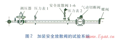 在調(diào)壓器和氣動切斷閥之間安裝6個安全放散并,測壓點選在安全放散閥下游的壓力表2處,用戶用氣設備切斷閥采用氣動切斷閥進行模擬。