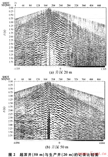 考慮到施工成本、施工效率和資料品質(zhì)等方面的因素,生產(chǎn)過程中可以部分井采取超深井激發(fā),并適當(dāng)降低疊加次數(shù),減少炮數(shù)、按少放炮多鋪道的原則,可以一定程度地緩解超深井所帶來的成本增加矛盾。