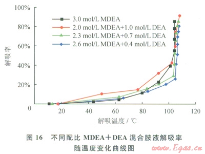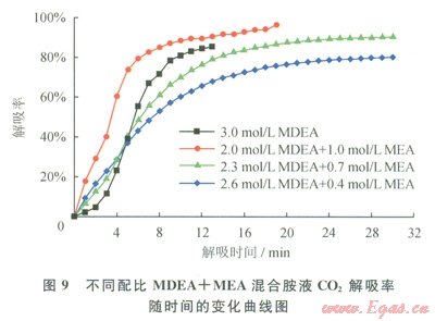 3.4 不同配比MDEA+DEA混合胺液對(duì)CO2的解吸性能