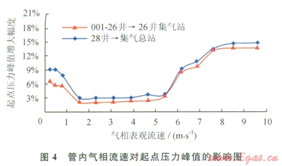 1)當(dāng)管內(nèi)氣相流速介于26ms時,清管中管道起點壓力超壓現(xiàn)象不明顯,清管時宜將管內(nèi)氣相流速控制在此范圍內(nèi)。