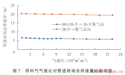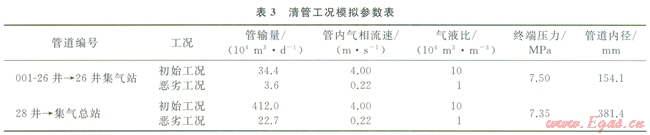 管內(nèi)氣相流速、原料氣氣液比等參數(shù)對清管過程中的管內(nèi)流體瞬態(tài)流動狀況具有重要影響。為此,以001-26®26井集氣站和28®集氣總站2條氣液混輸管道為例,分別對這2條管道開展管內(nèi)氣相流速和原料氣氣液比等參數(shù)的敏感性分析,以考察其對清管過程的影響。