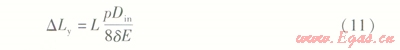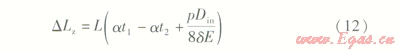 軸向應變乘以管段的計算長度,即得到管段由內(nèi)壓引起的伸長量DLy,即: