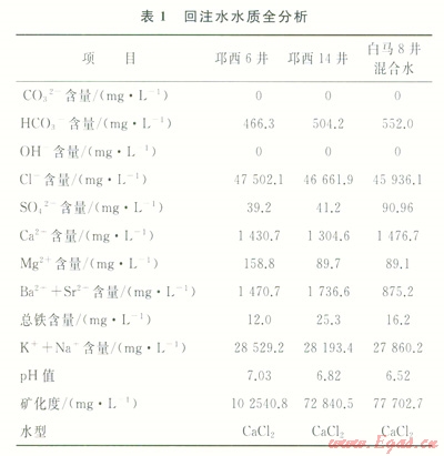 白馬8井是四川盆地邛西氣田回注系統(tǒng)中重要的回注井之一,該回注井接收來自邛西氣田邛西6井、邛西14井、大4井等6口氣井采出的氣田水混合注入地層,日回注量超過450m3。在該氣田水回注系統(tǒng)中,管線結垢導致通徑變小、水流阻力增大,注水壓力升高,不僅嚴重影響了回注效率且注水泵高負荷運轉存在較大的安全隱患。為解決氣田水回注系統(tǒng)管線結垢給邛西氣田氣井正常生產帶來的影響,對邛西氣田白馬8井回注站回注系統(tǒng)水質及垢樣進行了調查、分析,找出了造成管線結垢主要原因并進行了阻垢劑篩選及現(xiàn)場試驗。