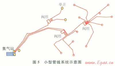 區(qū)塊內(nèi)小型管線系統(tǒng)如圖5所示,共5個測試點(以黃色圓形表示):華固18-2井(單井產(chǎn)氣量為516m3/d)、華固18-3井(單井產(chǎn)氣量為2774m3/d)、樊4集氣站的18號閥組采氣干線、樊4站進口匯管、樊4站出口。