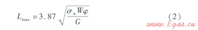 關(guān)于按強(qiáng)度條件確定活動(dòng)支架允許間距的計(jì)算,一些文獻(xiàn)給出了不同的計(jì)算方法。文獻(xiàn)[9]給出的計(jì)算式為: