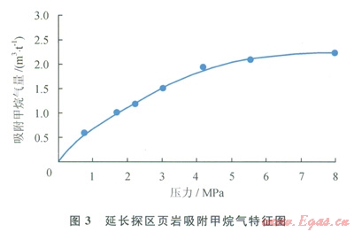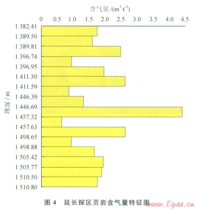 與常規(guī)天然氣類似,要構(gòu)成一定的儲量規(guī)模,頁巖氣必須具備充足的氣源條件,但這并不意味著其氣源條件狹窄,對地質(zhì)、地球化學(xué)等指標(biāo)仍有定量上的要求。在頁巖規(guī)模確定的前提下,含氣量的大小是決定探區(qū)是否具有商業(yè)開采價(jià)值的關(guān)鍵。含氣量的大小一方面受控于儲集空間的發(fā)育程度,另一方面受控于烴源巖的生氣能力,而最終決定頁巖生氣能力的是有機(jī)質(zhì)的豐度、類型和成熟度。有機(jī)質(zhì)的豐度、類型和成熟度在一定程度上具有生氣互補(bǔ)性,例如腐泥型母質(zhì)在熱演化程度較低時(shí)也可以生氣,而腐殖型母質(zhì)在高演化程度下才可能生成同等的氣量[3]。同理,含氣量的大小是各種地球化學(xué)參數(shù)指標(biāo)綜合作用的結(jié)果。延長探區(qū)內(nèi)1井與2井具有相同的母質(zhì)類型(以混合型為主),但l井的有機(jī)碳含量為2.2%,鏡質(zhì)體反射率為0.88%,孔隙度為0.25%;而2井的有機(jī)碳含量為3.9%,鏡質(zhì)體反射率為1.0l%,孔隙度為0.11%,孔隙度極小。然而,2口井頁巖的含氣量卻大致相當(dāng)(均接近3.5m3/t)。由此可見,地球化學(xué)指標(biāo)上的差異并不代表頁巖整體含氣性的差異,當(dāng)某個(gè)地球化學(xué)指標(biāo)條件差時(shí),若其他指標(biāo)較好仍可能具有可觀的含氣量。因此,在進(jìn)行頁巖氣地質(zhì)評價(jià)時(shí),不能采用單一的地球化學(xué)指標(biāo)來進(jìn)行判別。