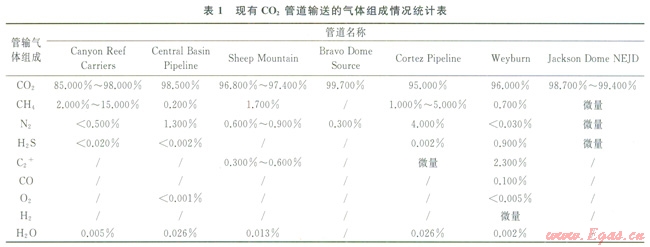 3 管道輸送CO2混合氣體的組成要求