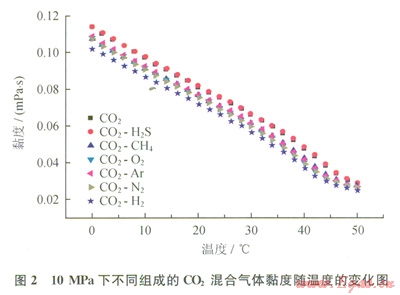 從圖2可以看出,雜質(zhì)通常會(huì)使CO2混合氣體黏度降低。