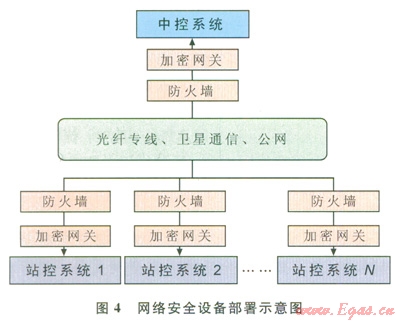 在中控系統(tǒng)和站控系統(tǒng)接入通信系統(tǒng)的邊界上部署硬件防火墻和加密網(wǎng)關(guān),以抵御基于TCP/IP的網(wǎng)絡(luò)攻擊,并對傳輸數(shù)據(jù)進(jìn)行加密保護(hù)。
