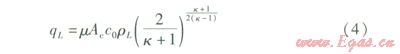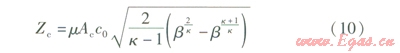 對(duì)于高壓天然氣輸送管道,當(dāng)出現(xiàn)開裂泄漏造成較大量的天然氣泄漏時(shí),破裂口天然氣流動(dòng)將會(huì)較長(zhǎng)時(shí)間都處于臨界流動(dòng)狀態(tài),即壓力比b≤bc。