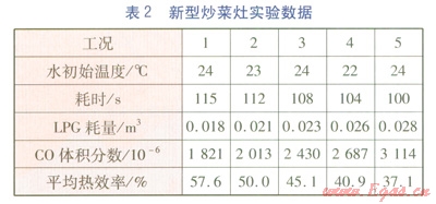 摘 要:介紹新型中餐液化石油氣炒菜灶的結(jié)構(gòu)。采用實驗方法,比較新型與傳統(tǒng)中餐夜化石油氣炒菜灶的熱效率、液化石油氣耗量、煙氣中一氧化碳體積分數(shù)。