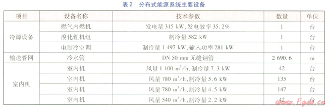 采用分布式能源系統(tǒng)時,由燃?xì)鈨?nèi)燃機(jī)發(fā)電,煙氣熱水型溴化鋰吸收式冷熱水機(jī)組(以下簡稱溴化鋰機(jī)組)制冷,同時配套電空調(diào)補(bǔ)充不足部分冷能,不足部分電能由外接電網(wǎng)供給。分布式能源系統(tǒng)可同時提供冷、熱、電,滿足大樓的多方面供能需求。在該分布式能源系統(tǒng)中,需建立一個小型能源站,配備管理人員若干,且對人員技術(shù)水平要求較高。該項(xiàng)目符合分布式能源系統(tǒng)能源需求量較穩(wěn)定的要求[2]。