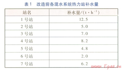 以青島市敦化路區(qū)域供熱蒸汽改高溫水工程為例,本區(qū)域內(nèi)原有的13座用戶熱力站以華電發(fā)電廠的蒸汽為熱源,改造后新建l座高溫水首站,13座用戶熱力站以首站高溫水為熱源,其中7座用戶熱力站采用混水系統(tǒng)供熱(如圖1所示),6座用戶熱力站采用間接換熱系統(tǒng)供熱。該工程改造完成后,供暖面積將達(dá)到192.6×104m2。在供熱規(guī)模不變的情況下,與原供熱方式相比,一級(jí)熱力管網(wǎng)(高溫水管網(wǎng)比蒸汽管網(wǎng)熱損失率大幅度降低)改造后節(jié)約標(biāo)準(zhǔn)煤量為2125.9t/a,凝結(jié)水回收節(jié)約標(biāo)準(zhǔn)煤量為1497.4t/a,新建高溫水首站增加電力能耗量折合節(jié)約標(biāo)準(zhǔn)煤量為-44.7t/a,綜合計(jì)算這3項(xiàng)得出每年降低煤耗折合標(biāo)準(zhǔn)煤量為3578.6t/a,可減少二氧化硫排放量為74t/a,減少煙塵排放量為18t/a,減少氮氧化物排放量為37t/a,減少二氧化碳排放量為9198t/a。該項(xiàng)目的實(shí)施具有良好的節(jié)能效益和環(huán)境效益,符合國(guó)家環(huán)保政策,通過(guò)該項(xiàng)目的實(shí)施可全面提升企業(yè)的能源綜合利用率,實(shí)現(xiàn)環(huán)境效益、社會(huì)效益和企業(yè)經(jīng)濟(jì)效益的協(xié)調(diào)統(tǒng)一。