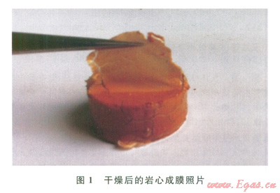 實驗表明:當成膜液濃度達200kg/m3后,巖心在成膜液中浸泡10s就能在表面形成防滲膜(圖1)。因此,從成膜效果和成本考慮,成膜液濃度300~400kg/m3為最優(yōu)加量。