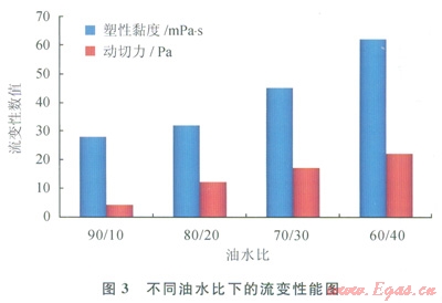 通過測試高密度不同油水比條件下鉆井液的流變性能,優(yōu)選了高密度條件下無土相油基鉆井液的最佳油水比范圍(圖3)。