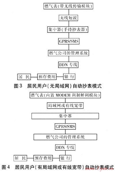 由購買氣量改為預存費用,預存費用的數(shù)值保存在燃氣公司的數(shù)據(jù)管理中心,以便根據(jù)燃氣價格實時調(diào)整,避免燃氣價格上漲前用戶囤氣給燃氣公司帶來損失。此方式綜合了國外的先進技術和我國的國情,將成為我國城鎮(zhèn)燃氣居民用戶、商業(yè)用戶今后計量收費的發(fā)展趨勢。對于其他不適合預付費方式的城鎮(zhèn)燃氣用戶,今后發(fā)展的趨勢是自動抄表。
