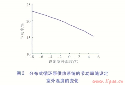 供熱系統(tǒng)位于石家莊時,在設(shè)定條件下,采用分布式循環(huán)泵供熱系統(tǒng)的節(jié)能率為19.3%。