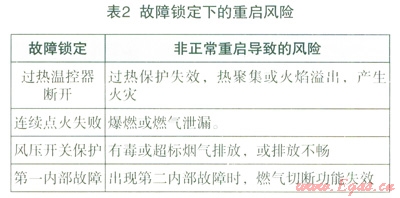如:燃燒控制及燃氣切斷功能,如果控制功能失效,將導(dǎo)致燃氣泄漏而產(chǎn)生火災(zāi)及爆炸,通常在設(shè)計中通過增加冗余設(shè)計及錯誤檢測來降低這種風(fēng)險的概率。