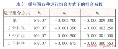 循環(huán)泵各種運(yùn)行組合方式下的擬合系數(shù)見表3。