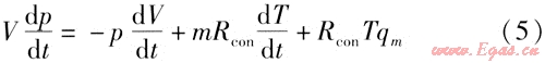 ② 調(diào)壓器內(nèi)氣體參數(shù)采用集中參數(shù)法處理,即認(rèn)為同一個腔室內(nèi)氣體分布均勻,參數(shù)處處相等;