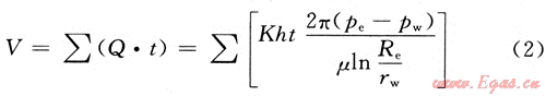 發(fā)現(xiàn)溢流關(guān)井后,地層氣體在地層壓力與井底壓力的壓差作用下會(huì)向井筒續(xù)流,續(xù)流作用的強(qiáng)弱取決于井底壓差和地層系數(shù)的大小。續(xù)流過程中地層氣體侵入體積公式可表示為:
