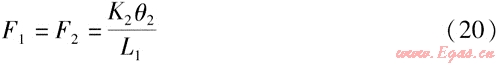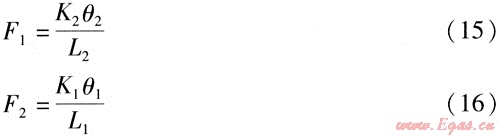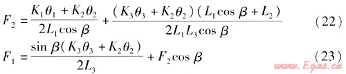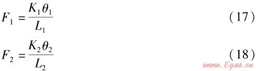 式中K2、K1——鉸鏈波紋管補(bǔ)償器S2、S1對應(yīng)的角向剛度,N·m/(°)