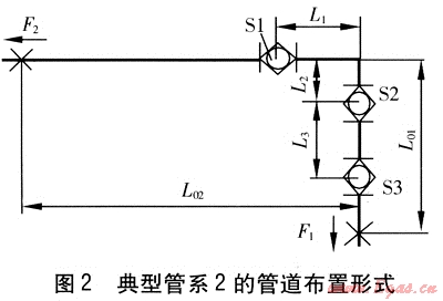 典型管系2的管道布置形式見圖2。