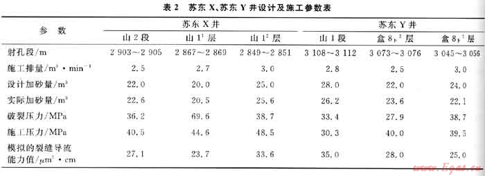 為了評價(jià)粒徑細(xì)分后20/30目支撐劑對蘇里格氣田東區(qū)儲(chǔ)層的適應(yīng)性,2010年分別在蘇東X、蘇東Y井進(jìn)行了現(xiàn)場壓裂試驗(yàn),2口井試氣結(jié)果證明,使用20/30目支撐劑取得了很好的改造效果。