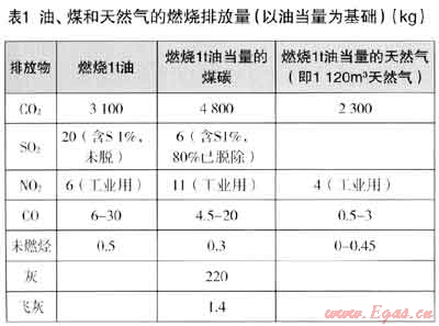 ② 表2中,日本介紹了各種燃料考慮燃料效率后的排放量。美國(guó)資料也認(rèn)為天然氣比其他燃料可少排放45%的C02,如采用高效燃燒技術(shù)甚至可能減少70%的C02。但效率應(yīng)采取不同使用設(shè)備的平均綜合效率,這又是一個(gè)重要的研究課題。