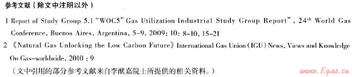(5) 本文所引用的資料均是本世紀(jì)以來值得研究的數(shù)據(jù),從中可看出世界各國(guó)對(duì)本世紀(jì)能源構(gòu)成的共同發(fā)展方向。在化石燃料中,由于天然氣的碳/氫比較小,是唯一能滿足節(jié)能、減排要求的燃料,常稱為環(huán)境友好燃料。在世界各國(guó)的能源構(gòu)成中,我國(guó)是所占比重最低的國(guó)家之一,改革開放以來的變化也很小。增加1000億m3的天然氣,相當(dāng)于1.2億t的標(biāo)準(zhǔn)煤,按表2可算出燃料效率提高后的節(jié)能量和C02減排量。當(dāng)今世界年消耗天然氣約2.48億m3,相當(dāng)近29億t標(biāo)煤,在世界能源、減排中有舉足輕重的作用,到2030年估計(jì)全球天然氣消費(fèi)料將達(dá)4.5億m3-5億m3。國(guó)際研究表明,加上可再生能源,新能源和其它減排措施后,全球C02的濃度可能降低到1990年水平的要求。本世界以來天然氣已形成了較大的國(guó)際市場(chǎng),發(fā)展天然氣已成為各國(guó)應(yīng)對(duì)氣候變暖的首選方案。我國(guó)在國(guó)家“十二五”規(guī)劃綱要中已有反映。
