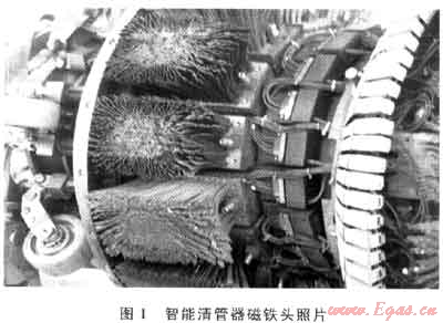 近年來,長輸天然氣管道加強了在役檢測,廣泛采用了數(shù)字化的智能清管器,與傳統(tǒng)的“投球”清管后再進行無損檢測作業(yè)相比,使用智能清管器具有開挖面積小、融清潔與診斷為一體的優(yōu)勢,但在實施智能清管作業(yè)過程中,受清管器發(fā)射的磁場波影響,管道帶磁情況較為嚴(yán)重。智能清管器磁鐵頭(其示意圖如圖1所示)在清管作業(yè)過程中,由鐵毛刷下端的磁鐵塊不斷向管內(nèi)壁發(fā)出磁場波,導(dǎo)致管道帶磁。北方某公稱直徑1016mm的天然氣輸氣管道受此影響,導(dǎo)致?lián)Q管碰口施工中無法正常進行根焊作業(yè)。