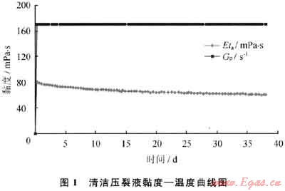 采用Fann50黏度計(jì)測試破膠液性能如表1所示,該清潔壓裂液在90℃、2~4h內(nèi)破膠徹底。