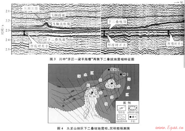 川西九龍山地區(qū)下二疊統(tǒng)棲霞組、茅口組為典型的碳酸鹽緩坡沉積環(huán)境,沉積環(huán)境主要受下伏志留系相對(duì)淺水和深水古環(huán)境的控制。探索性地采用地震相與沉積相的綜合解釋技術(shù),預(yù)測(cè)高能灘發(fā)育的有利區(qū)域。通過地震相分析,下二疊統(tǒng)內(nèi)部地震反射時(shí)間厚度異常增加,反射同相軸增多,底界明顯超覆于志留系上,3種不同的地震相特征表明下二疊統(tǒng)為志留系殘余古高地繼承性沉積,古地貌特征決定了本區(qū)高能灘的有利發(fā)育區(qū)。利用3種地震相特征綜合分析,預(yù)測(cè)了高能灘發(fā)育的有利區(qū)域,經(jīng)實(shí)鉆證實(shí),地震相與沉積相分析方法能提高下二疊統(tǒng)高能灘儲(chǔ)層的鉆探成功率。