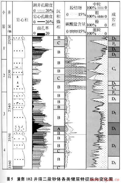 上述分析表明,須二段砂巖儲層在巖石成分和孔隙結構等方面的非均質性較強。