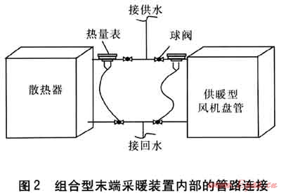在維持基礎(chǔ)室溫的散熱器開啟條件下,人們可根據(jù)實際需要間歇開啟風(fēng)機盤管。需要時開啟風(fēng)機,室溫迅速達到設(shè)定溫度后,關(guān)閉風(fēng)機電源,風(fēng)機停止運轉(zhuǎn)。此時,熱水流經(jīng)供暖型風(fēng)機盤管和散熱器,回到外網(wǎng)。