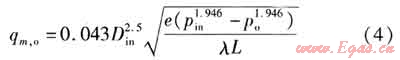 引入流量效率因數(shù)e,反映局部阻力的影響。無局部阻力的直管段取1.00,運(yùn)行較好的管段取0.95,運(yùn)行一般的管段取0.92,運(yùn)行不好的管段取0.85。計(jì)算管段出口蒸汽質(zhì)量流量qm,o的計(jì)算式為: