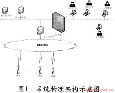 根據(jù)公司對(duì)網(wǎng)絡(luò)安全的特殊要求,采用GPRS/CDMA專線,實(shí)現(xiàn)采集終端和服務(wù)器平臺(tái)之間采用端到端加密,避免信息在整個(gè)傳輸過(guò)程中出現(xiàn)泄漏的可能,兩者通過(guò)防火墻進(jìn)行隔離,并在防火墻上進(jìn)行IP地址和端口過(guò)濾。