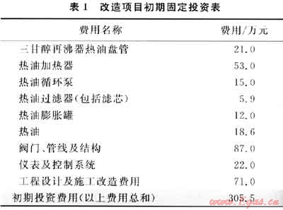 從前面的討論中可以看到,該方案拆除原有三甘醇再沸器的直燃式加熱火管及其燃料氣控制系統(tǒng),改為熱油加熱后,每年將節(jié)約燃料氣161×104m3,每年可實現(xiàn)的節(jié)能減排量為1955.023t標準煤。按目前國內(nèi)市場上天然氣價格約為2元/m3計,每年將節(jié)約費用322萬元。