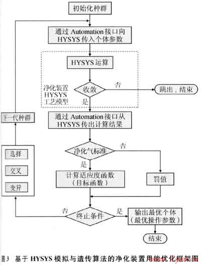 摘要:為了降低含硫天然氣處理過(guò)程中的能量消耗和操作成本,應(yīng)用工業(yè)流程模擬軟件HYSYS建立了含硫天然氣凈化裝置工藝模型,并基于數(shù)據(jù)對(duì)象接口(Automation)技術(shù)開(kāi)發(fā)了HYSYS與矩陣數(shù)值分析軟件Matlab之間的接口程序,將HYSYS工藝模型作為適值函數(shù)計(jì)算的基礎(chǔ)并入遺傳算法(GA)中,從而建立了基于HYSYS模擬和遺傳算法的天然氣凈化裝置用能優(yōu)化模型。應(yīng)用此優(yōu)化模型對(duì)川渝地區(qū)某50×104m3/d天然氣凈化裝置的用能進(jìn)行了操作參