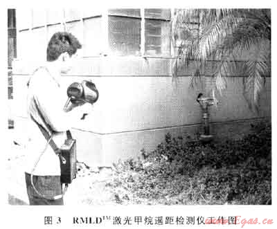 RMLDTM激光甲烷遙距檢測儀作為便攜式中的領(lǐng)先產(chǎn)品,采用了可調(diào)諧二極管激光吸收(TDLAS)技術(shù),可以調(diào)頻檢測C0和C02氣體的含量,并且能夠巡檢原來不能到達或不易到達的地方,不必將探頭置于可燃氣體的環(huán)境中,操作人員不用處于一些危險的環(huán)境中,提高了工作環(huán)境的安全性,降低了操作人員的勞動強度。同時檢測儀預(yù)熱時間短,只需2~3min,且具有自檢和標定的功能。RMLDTM激光甲烷遙距檢測儀工作圖如圖3所示。