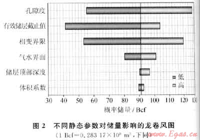 天然氣體積系數(shù)對儲量大小的影響雖然小,但仍將其考慮于模型中。體積系數(shù)的變化范圍由雪佛龍能源技術公司(ETC)提供。