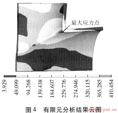進(jìn)行求解并查看求解結(jié)果過程,分別計(jì)算出內(nèi)壓為0.4MPa和4.0MPa時(shí)材料的最大主應(yīng)力為41.045MPa和410.454MPa。