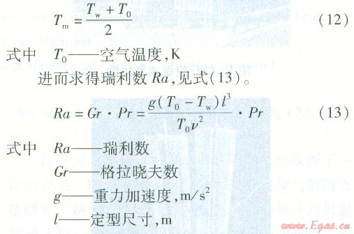 首先由空氣的定性溫度Tm確定其物性參數(shù),Tm計(jì)算公式為: