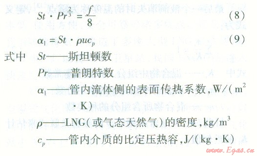 管內(nèi)LNG或氣態(tài)天然氣的對流換熱可以按照內(nèi)部強(qiáng)制對流換熱的實(shí)驗(yàn)準(zhǔn)則關(guān)聯(lián)式進(jìn)行計(jì)算。