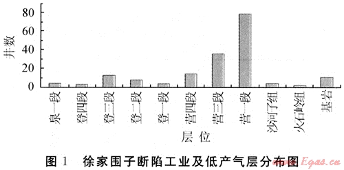 由表4中可以看出,徐家圍子斷陷營(yíng)一段頂部蓋層厚度小,被斷裂破壞程度高,均為完全破壞,不利于天然氣聚集與保存。但由于該套蓋層排替壓力高(排替壓力平均可以超過9MPa),從微觀封閉能力上封閉天然氣是沒有問題的[14]。由圖1中可以看出,該套蓋層之下聚集了該斷陷最多的天然氣,這主要是由于該套蓋層具較強(qiáng)的微觀封閉能力,但由于該套蓋層被斷裂多處破壞,橫向分布連續(xù)性差,造成天然氣平面富集不集中,沿?cái)嗔褞С史稚⒎植紶顟B(tài)(圖2)。