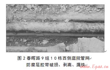 2009年,公司對(duì)埋地鋼管腐蝕較為嚴(yán)重的西城路特陶小區(qū)進(jìn)行全面改造,將埋地鋼管全部更換為PE管,至今平穩(wěn)安全運(yùn)行,取得了很好的效果。但因費(fèi)用較高、開挖困難,難以全面推廣。