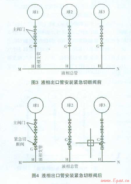 根據(jù)《氣瓶安全監(jiān)察規(guī)定》:《氣瓶充裝許可證》的有效期為4年;有效期滿前,氣瓶充裝單位應(yīng)當(dāng)向原審批部門申請更換《氣瓶充裝許可證》。我公司的液化石油氣儲灌站于2011年7月向河北省質(zhì)監(jiān)局提出《氣瓶充裝許可證》的換證申請;河北省特種設(shè)備學(xué)會于2011年11月對液化石油氣儲灌站進(jìn)行了現(xiàn)場評審。評審專家根據(jù)新版《城鎮(zhèn)燃?xì)庠O(shè)計規(guī)范》中關(guān)于對“液化石油氣儲罐上安全閥件的配置”,要求我液化石油氣儲灌站3座400m,的液化石油氣球罐的氣相管和液相出口管上的根部主閥門下加裝緊急切斷閥。