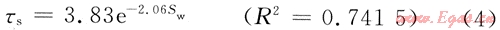 實(shí)驗(yàn)樣品的抗剪切強(qiáng)度與含水飽和度(泥質(zhì)含量30%)回歸關(guān)系式(圖2)為:
