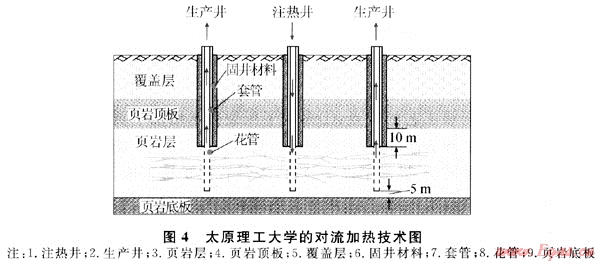 利用高溫?zé)N類(lèi)氣體對(duì)流加熱油頁(yè)巖開(kāi)采油氣技術(shù)是太原理工大學(xué)發(fā)明的一種原位開(kāi)采技術(shù)(圖4)。