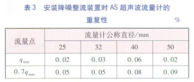 ③安裝降噪整流裝置的超聲波流量計的重復性要明顯好于未安裝降噪整流裝置的超聲波流量計的重復性。